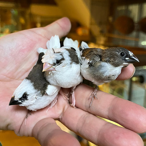 やっぱりフィンチは可愛いなってことで、最近希少な十姉妹のヒナです。十姉妹が最近減ってきています。しっかり可愛がって下さる方、是非お迎えください。