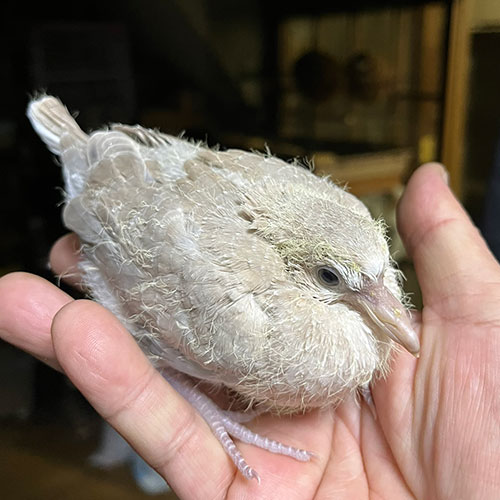 2号と表記しましたが、20日生まれの事は腹違いの兄弟です。お父さんが同じだけど、この子は母親が真っ白い銀鳩です。