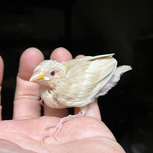 人気のクリーム文鳥!とってもいい子です。シナモンとクリームよく似ていますが、ヒナの内は尾羽の色の明るさで見分けが出来ます。