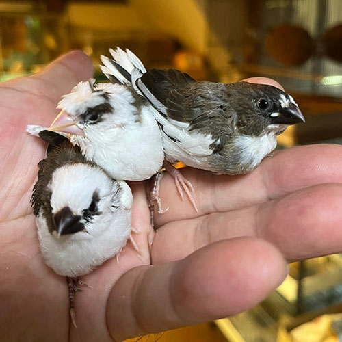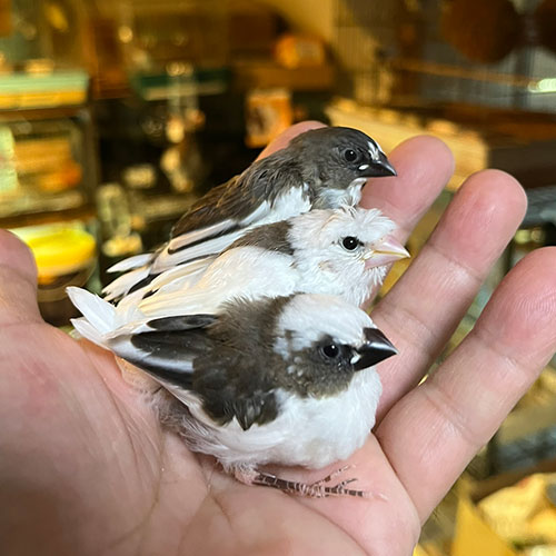 やっぱりフィンチは可愛いなってことで、最近希少な十姉妹のヒナです。十姉妹が最近減ってきています。しっかり可愛がって下さる方、是非お迎えください。