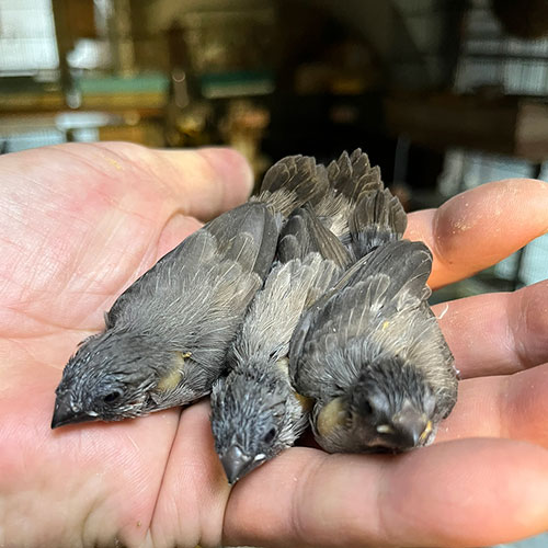 今期は十姉妹の繁殖と、保護活動に力を注いでいるはなぶさ堂でございます。「和十姉妹」というのは、見た目がヨーロッパ十姉妹に非常に似ていることから、ペットショップでは知らず知らずのうちに「ヨーロッパ十姉妹」として販売されるのが非常に残念です。こんなに奇麗な薄墨色のとてもちいかわな子達、江戸の昔から日本古来の品種だっての(;^_^A。