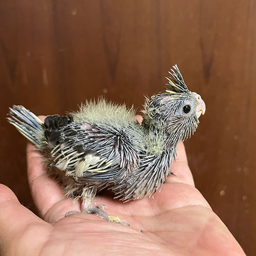 めちゃくちゃ可愛い、オカメインコのヒナです(*´Д`)。いっちょ前に冠羽もしっかり立ってます。実はこの子の兄弟も未だ巣箱に居るので、そっちの子も成長が楽しみです(^^)/