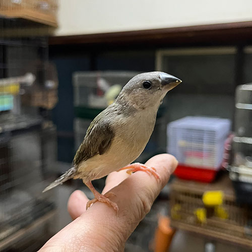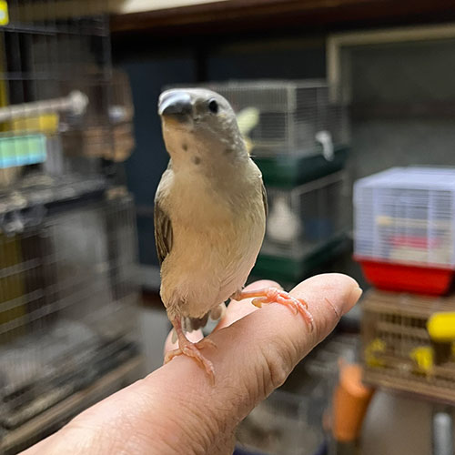 03/6現在、さし餌は卒業しております。既にカゴで暮らせますので、手乗りのコキンチョウに興味のある方は是非この機会に会いに来てください。