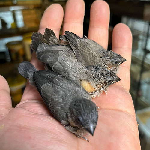 今期は十姉妹の繁殖と、保護活動に力を注いでいるはなぶさ堂でございます。「和十姉妹」というのは、見た目がヨーロッパ十姉妹に非常に似ていることから、ペットショップでは知らず知らずのうちに「ヨーロッパ十姉妹」として販売されるのが非常に残念です。こんなに奇麗な薄墨色のとてもちいかわな子達、江戸の昔から日本古来の品種だっての(;^_^A。